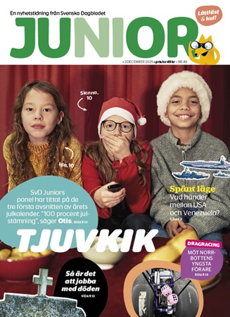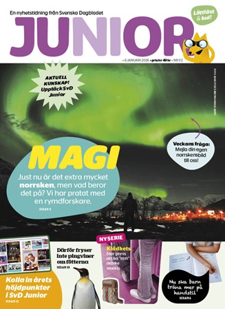 Riktiga nyheter för barn och ungdomar! SvD Junior är tidningen som öppnar upp dörren för våra yngre prenumeranter att ta del av viktiga och aktuella nyheter från såväl Sverige som övriga världen. Här får läsarna ta del av kvalitétsjournalistik anpassat för 8–14 åringar. Tidningen tar även upp dessutom roliga vetenskapliga frågor varvat med intressant info om spännande djur och läsartips. Läsarna har dessutom möjlighet att skicka insändare med frågor och funderingar till tidningens experter.