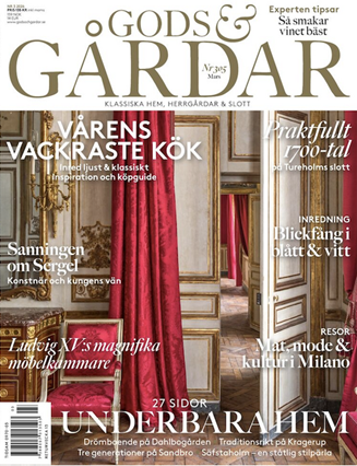 Drömmer du om att bo på en herrgård, ett slott eller en gård? Vill du få en inblick i hur det är att leva i en historisk och vacker miljö? Då är tidningen Gods & Gårdar perfekt för dig! Gods & Gårdar kommer ut sex gånger per år och tar dig med till Sveriges vackraste gårdar, slott och herresäten. Här får du läsa om familjerna som bor där, deras historia, passion och livsstil. Du får också se fantastiska bilder på deras hem, inredning, konst, antikviteter och trädgårdar.